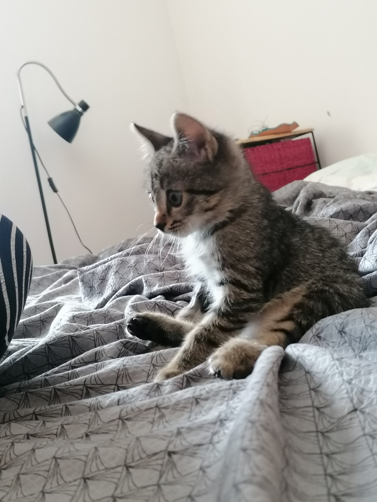 Zgodba našega Lojzeka se je začela na predvečer naših prvih brezplačnih delavnic programiranja za otroke in mladino, lansko jesen. Skozi okno najete učilnice, kjer smo pripravljali in nameščali vse potrebno za delavnice prihodnjega dne, smo iz bližjega jarka, v grmovju nasipa nad mariborsko obvoznico zaslišali nemočno mijavkanje: “Slišiš, muca je!”, “Ne to ni muca! Kako bi na to prometno cesto zašla muca?” Seveda smo šli preverit in res, iz grmovja, na nasipu pod katerim 10 metrov nižje so drveli avtomobili, so nas gledale drobne prestrašene očke nebogljene živalice, kake tri tedne stare, zavržene mucke. Jasno je bilo, da moramo ukrepat in drobno bitje obvarovati pred nevarnostjo.